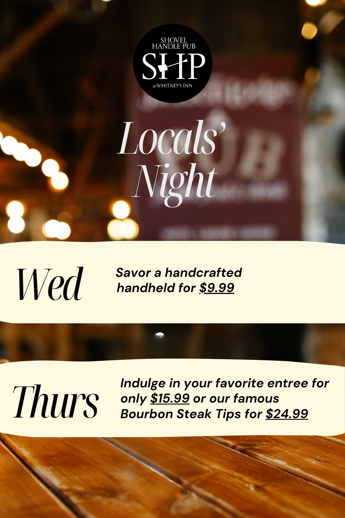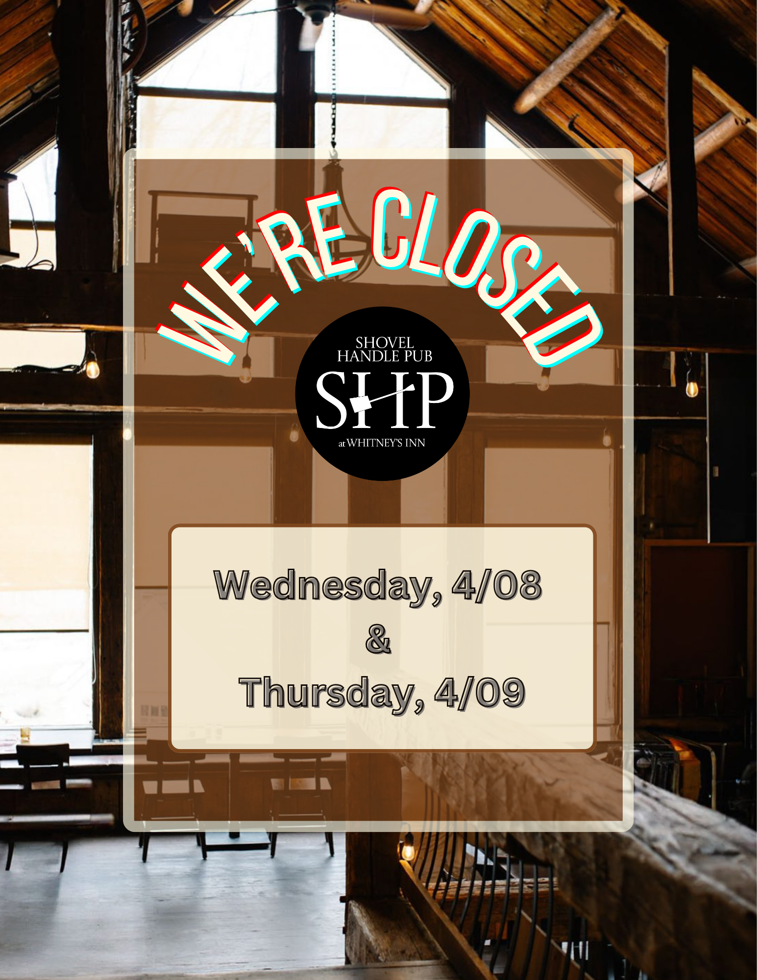 Tucked inside a beautifully restored post-and-beam barn built in 1842, the Shovel Handle Pub is where history meets hospitality. Once a working barn until the 1970s, the space still features original cow stanchions —creating an atmosphere that’s both nostalgic and unforgettable.With panoramic views of Black Mountain Ski Resort just outside our windows, you can enjoy dinner across three levels of cozy dining. We're casual, we're family-friendly, and we're all about making memories.With live music nightly from 6–9 PM, the Pub is more than just dinner—it's an experience. Gather around the fire for complimentary marshmallows to roast, a game of cornhole, or even a little trout fishing in our stocked pond. Inside, the game room is always buzzing with darts, foosball, and pool.Whether you're here for the music, the mountain views, or just the marshmallows—welcome to your new favorite spot.